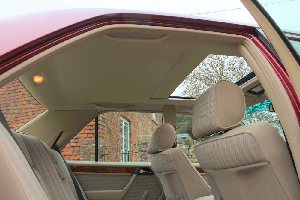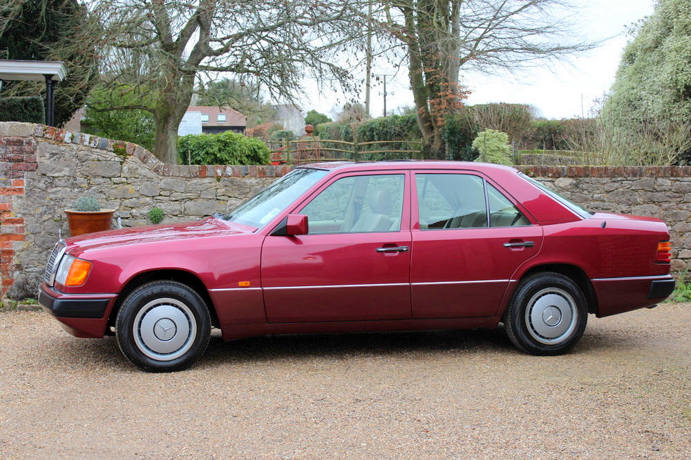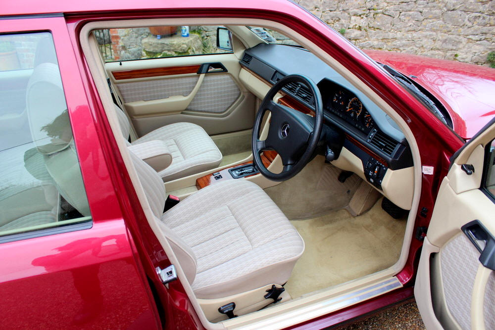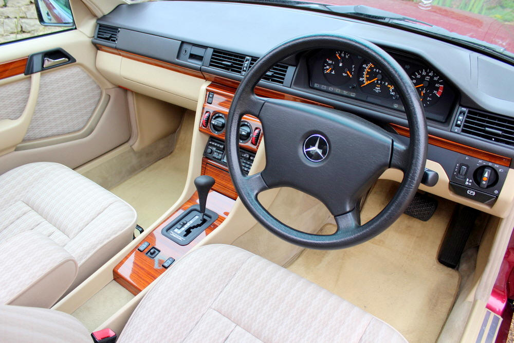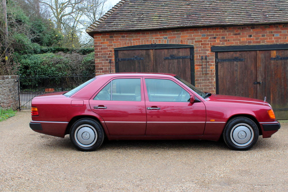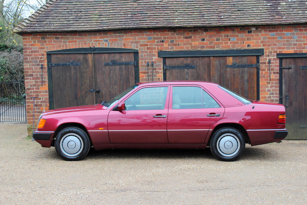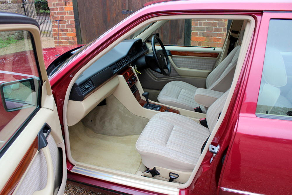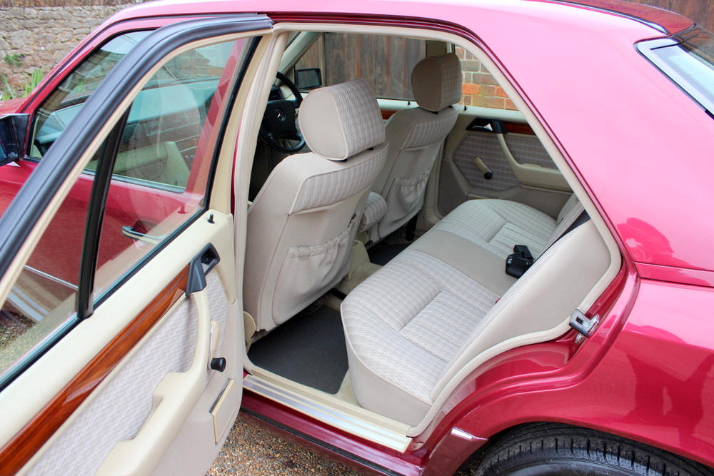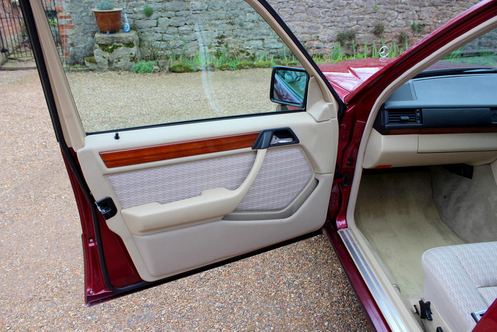 1992 Mercedes E200 finished in Almandine Metallic Red with Beige cloth trim. Covered just 63,000 miles from new having had just 2 former keepers and full Mercedes main agent and Mercedes specialist service history. This car can only be described as absolutely incredible; everything is working perfectly with no squeaks or rattles. One the road the car performs faultlessly, smooth and whisper quiet with seamless gearchanges. The body and paintwork are exceptional and the interior is truly a time warp, it feels looks and even smells new. Offered with an impressive history file complete with all the owners books including fully stamped service book. Sold fully serviced with 1 year’s MOT. Viewing this exceptional classic Mercedes is highly recommended.